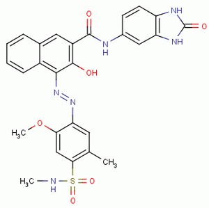 Mga Aliases:2-Nephthalenecarboxamide, N- (2,3-dihydro-2-oxo-1H-benzimidazol-5-yl) -3-hydroxy-4 - ((2-methoxy-5-methyl-4 - ((methylamino) sulfonyl) phenyl) azo) -; 2-Nephthalenecarboxamide, N- (2,3-dihydro-2-oxo-1H-benzimidazol-5-yl) -3-hydroxy-4- (2- (2-methoxy-5-methyl-4 - ((methylamino) sulfonyl) phenyl) diazenyl) -; N- (2,3-Dihydro-2-oxo-1H-benzimidazol-5-yl) -3-hydroxy-4 - ((2-methoxy-5-methyl-4 - ((methylamino) sulphonyl) phenyl) azo) naphthalene-2-carboxamide; 12516; Malalim na Scarlet; Permanenteng Carmine HF4C; Peony Red [HO]; ; (4Z) -4- {2- [2-methoxy-5-methyl-4- (methylsulfamoyl) phenyl] hydrazinylidene} -3-oxo-N- (2-oxo-2,3-dihydro-1H-benzimidazol-5 -yl) -3,4-dihydronaphthalene-2-carboxamide