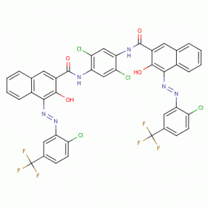 Alyas ng Ingles: Pulang pula 242; PR242; Sandorin Scarlet 4RF; 2-Nephthalenecarboxamide, N, N '- (2,5-dichloro-1,4-phenylene) bis- [4 - [[2-chloro-5- (trifluoromethyl) phenyl] azo] -3-hydroxy-3-hydroxy -; (4Z, 4'E) -N, N '- (2,5-dichlorobenzene-1,4-diyl) bis (4 - {[2- chloro-5- (trifluoromethyl) phenyl] hydrazono} -3-oxo- 3,4-dihydronaphthalene-2-carboxamide); 4- [2-chloro-5- (trifluoromethyl) phenyl] azo-N- [2,5- dichloro-4 - [[4- [2-chloro-5- (trifluoromethyl) phenyl] azo-3-hydroxy-naphthalene -2-carbonyl] amino] phenyl] -3-hydroxy-naphthalene-2-carboxamide; N, N '- (2,5-dichloro-1,4-phenylene) bis [4 - [[2-chloro-5- (trifluoromethyl) phenyl] azo] -3-hydroxynaphthalene-2-carboxamide] CAS number: 52238 -92-3